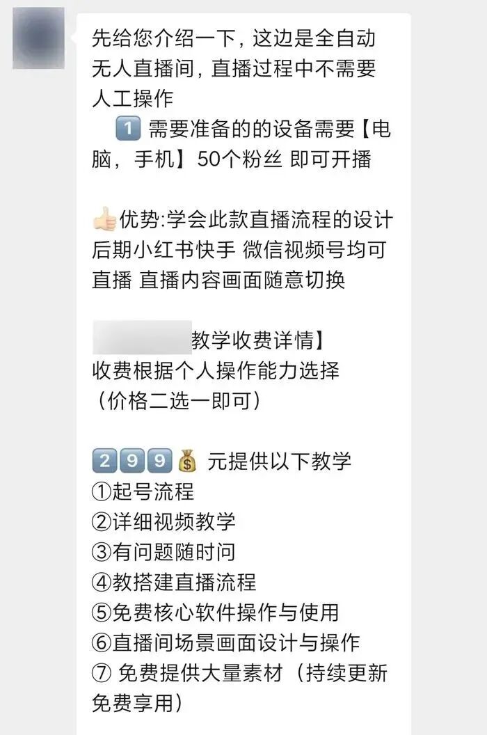 并且不光是自己整的热闹,还延伸出一系列“收徒”操作,可以付费学习直播间搭建,差不多两三百块钱就可以让你实现躺着挣钱,既打了鬼子又鼓了钱包,看似是个一举两得的买卖。