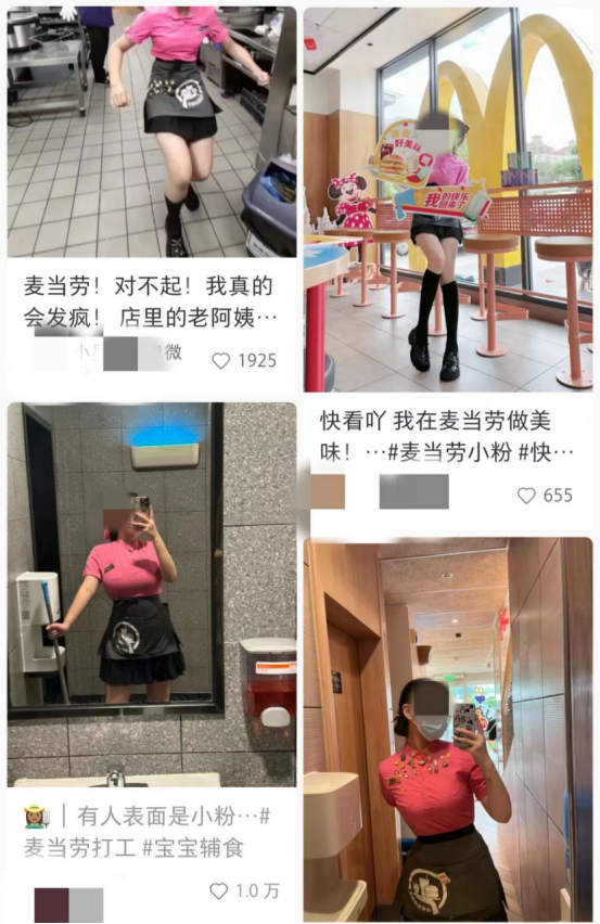 店门口劈叉、衬衫紧身衣,前凸后翘的火辣造型成功将麦当劳送上热搜,不过麦当劳因此被冠上了擦边球和“制服诱惑”的骂名。