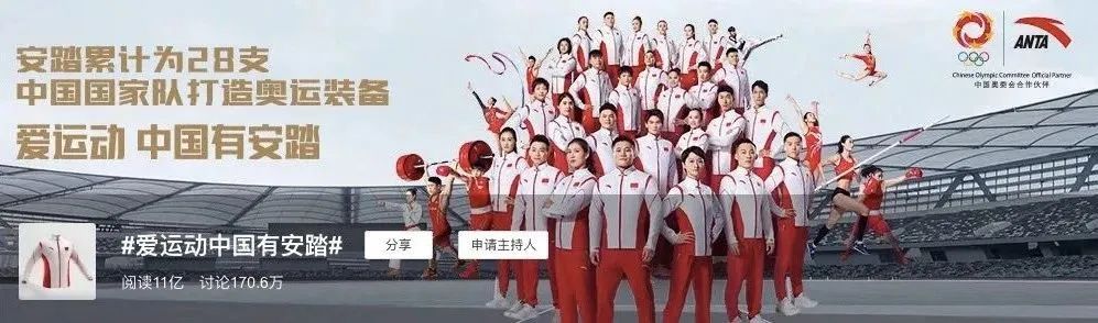 而slogan“爱运动中国有安踏”在微博阅读量已经高达11亿。除了话题榜,安踏还发布了揭秘奥运龙服设计背后故事的短片,让更多人了解奥运龙服所蕴含的体育精神与中国文化。
