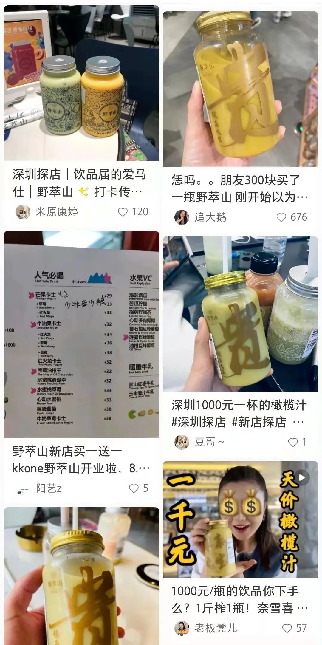 别看人家卖1000元,野萃山在深圳开了超30家,店均月销量超14000杯,还获得了喜茶的投资。很好奇,喜茶为什么自己不搞这种“天价”橄榄汁。