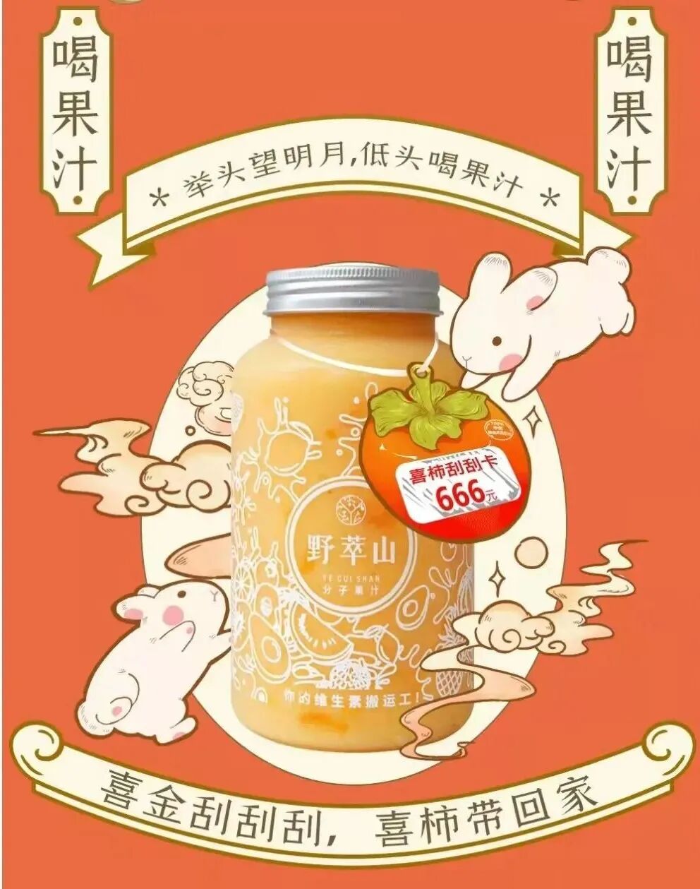 除此之外,野萃山在节假日推出新品,会运用到谐音梗,中秋节,新饮品的成分有柿子,就起名柿柿(事事)如意,海报也是跟谐音梗紧密联系在一起,“柿柿如意”的海报宣传图就是“海上生明月,天涯共此柿”。幽默诙谐,让消费者记住野萃山的产品,不愧是野萃山的小心机。