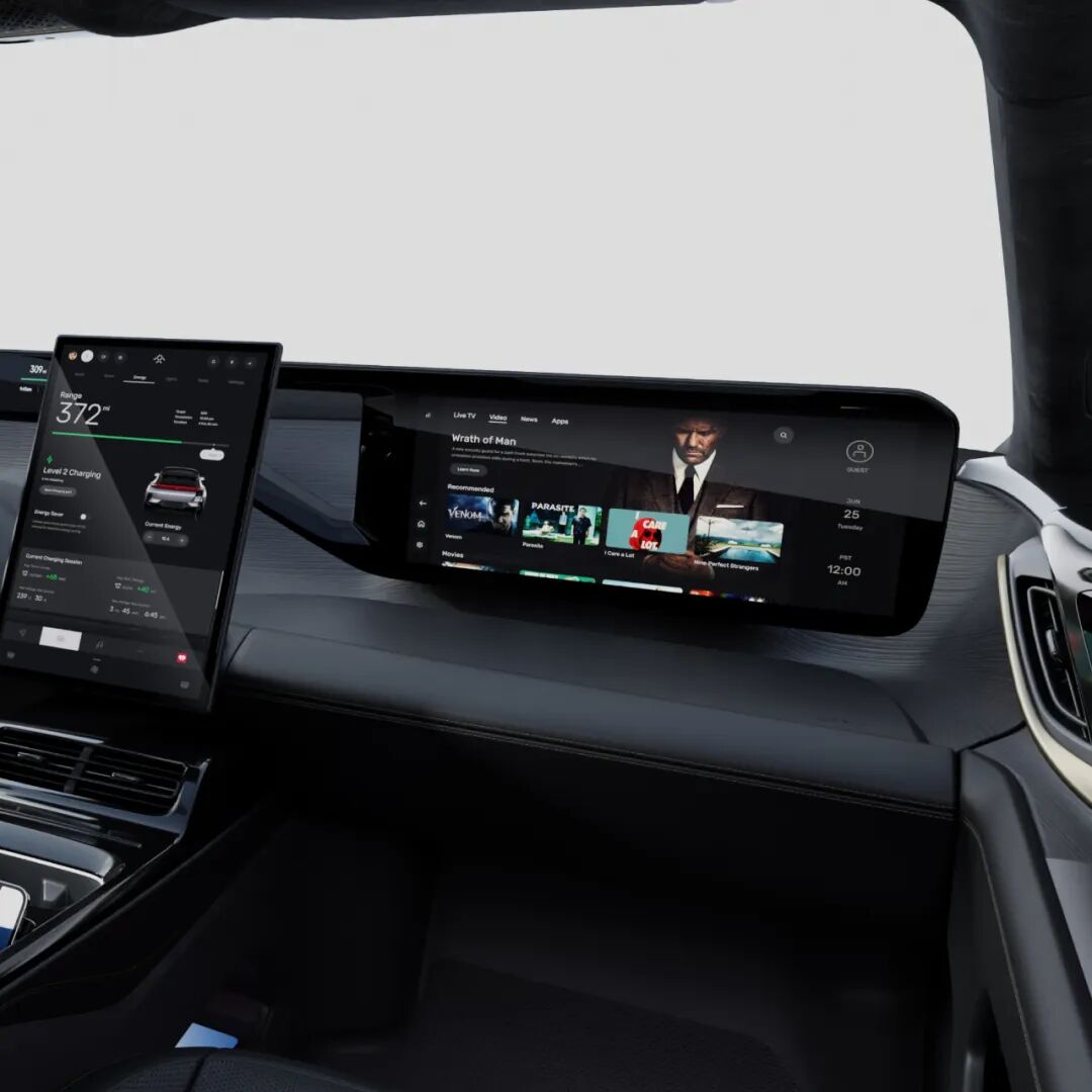 据说,这台车零百加速仅需2.27秒,在相似轴距的超豪华车型中,拥有最长的内部空间,同时配备零重力座椅,支持按摩、加热等等,还配备了各种“大彩电”,在车上可以顺畅的召开视频会议。