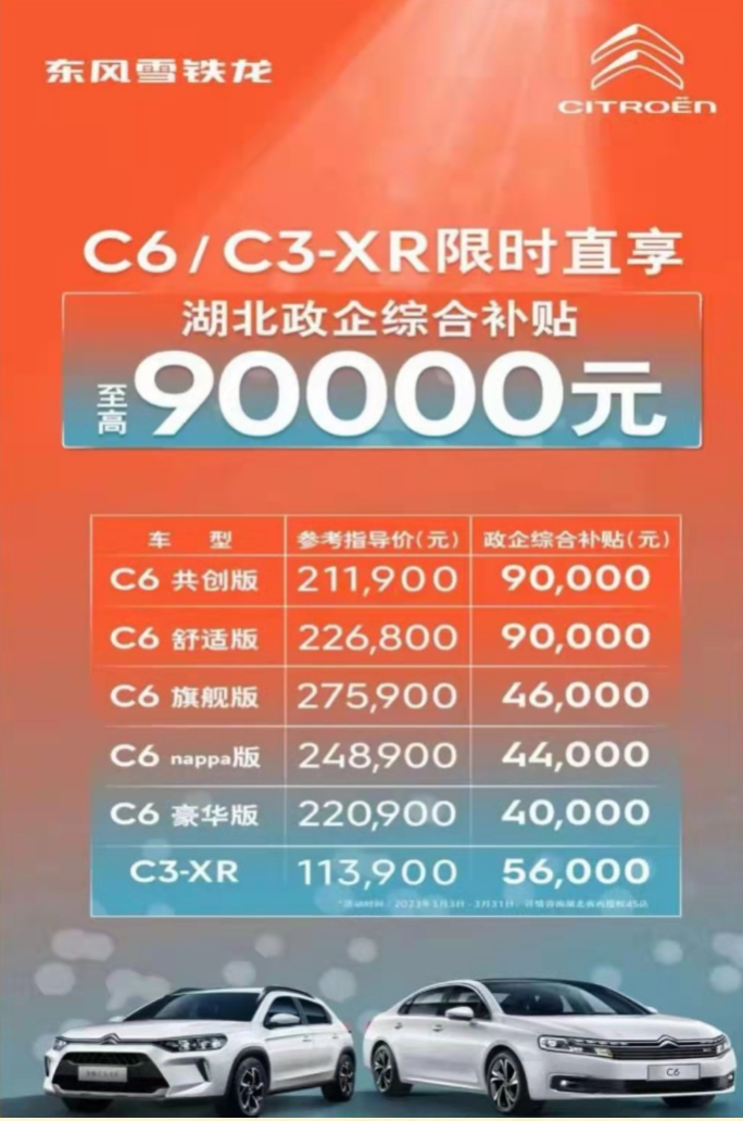 春季刚过,湖北武汉东风系列,以“车企补贴”+“地方政府”的形式,开启一波“掀桌子”般的大降价。其中最轰轰烈烈的莫过于最高补贴高达9万元的东风雪铁龙C9,从销售低迷到炙手可热。