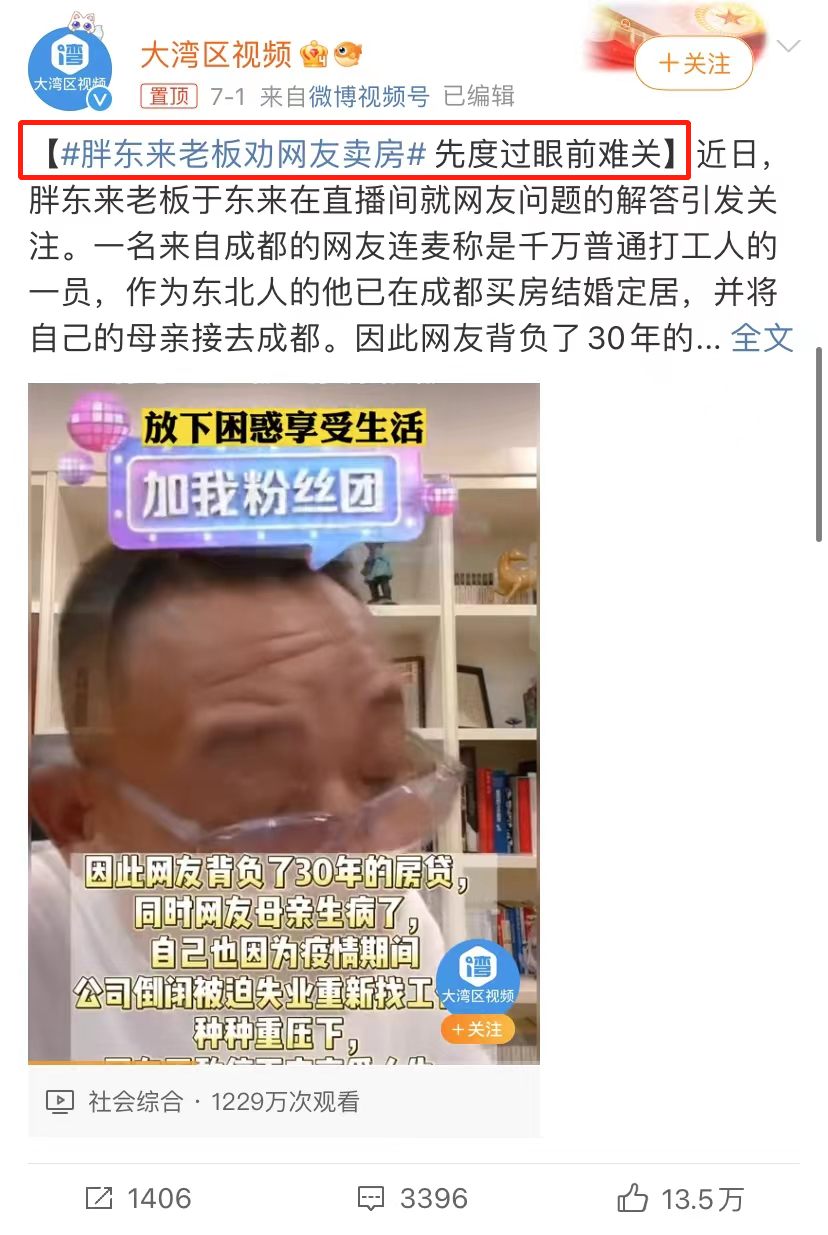 于东来从根源上解决,直接开劝:“如果房贷让你压抑痛苦困惑,亏也要把它卖掉。”