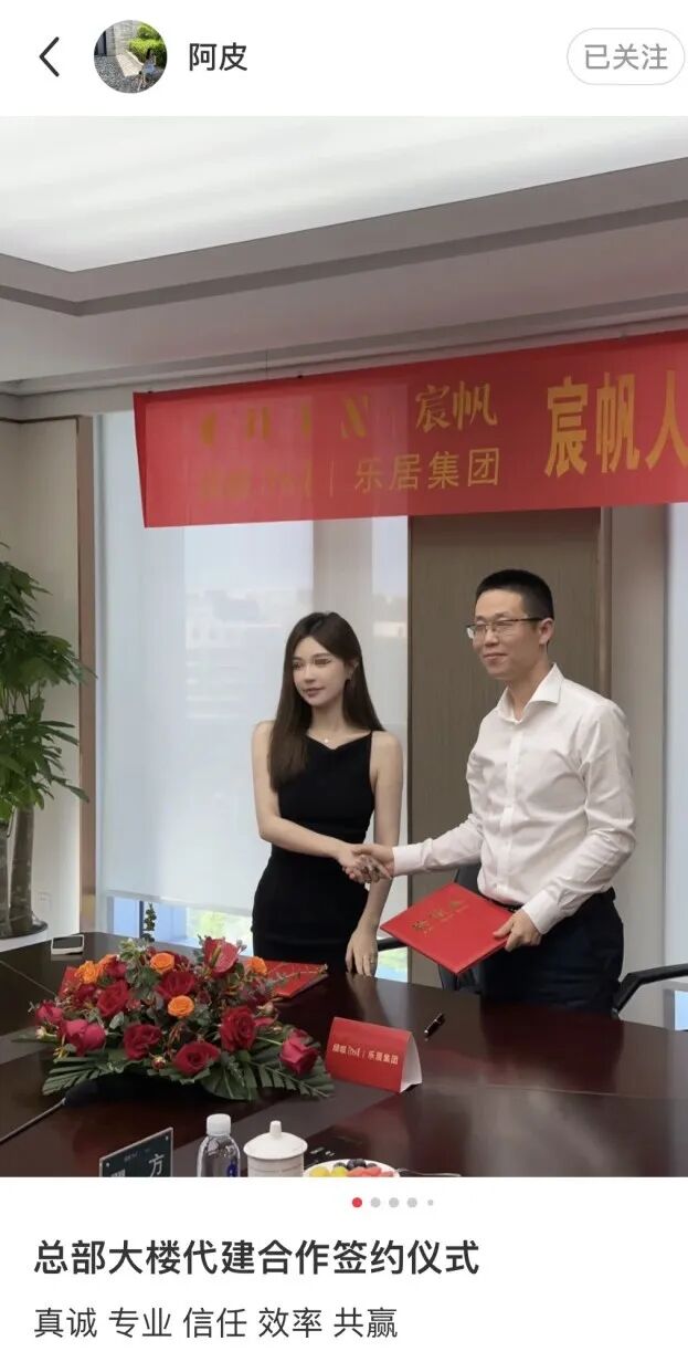 近日,有人在社交平台上晒出照片,身穿黑色连衣裙的雪梨代表宸帆电子商务有限公司(以下简称宸帆),与绿城管理举行签约仪式。