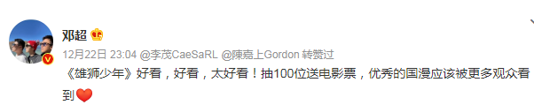有网友说:好看,有被舞狮画面震撼到。明星邓超也发微博打call。
