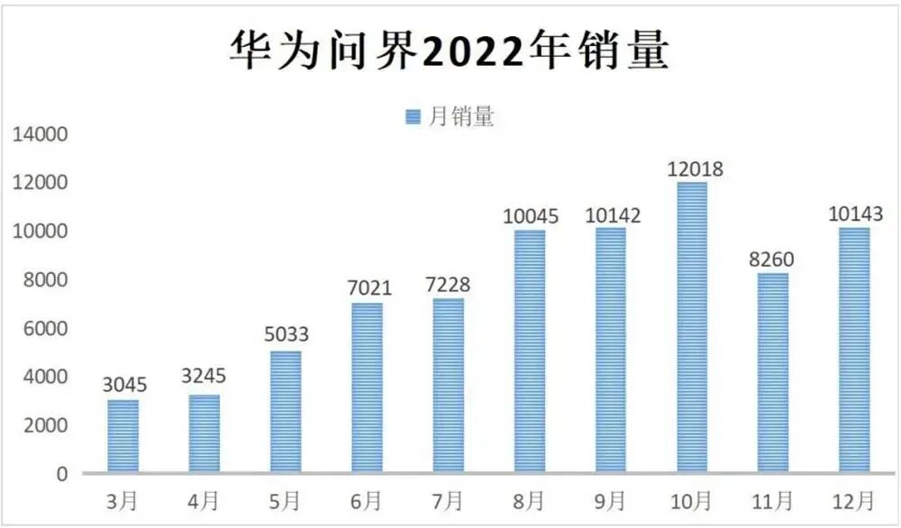 同时,从销量来讲,华为问界的表现算不上亮眼,自开启交付以来月销一直在1万辆左右徘徊。