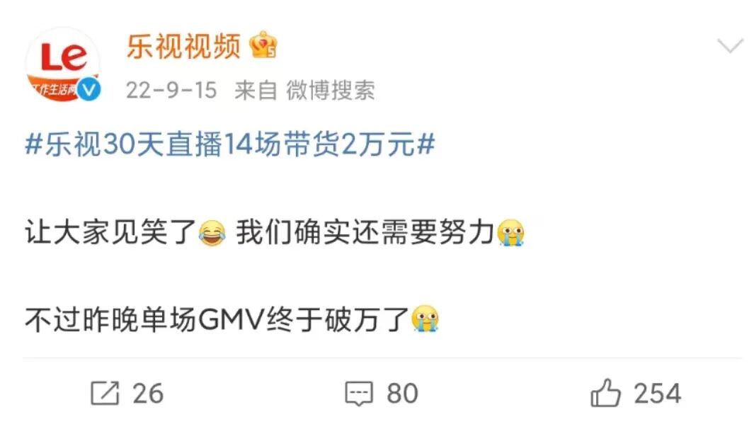 对比动不动上万上亿的东方甄选、交个朋友,乐视没有罗永浩也没有董宇辉,一句“让大家见笑了”道尽艰辛和心酸。