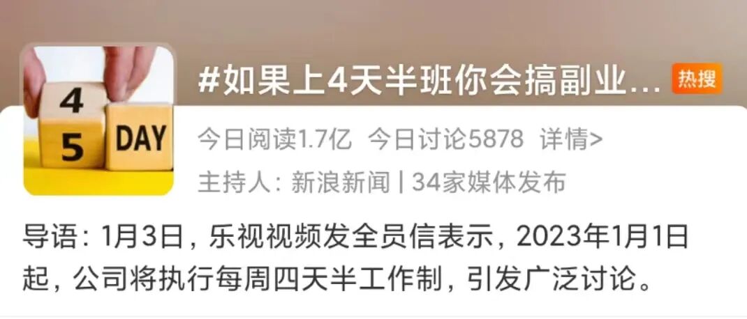 在2023年的第一个工作日里,乐视起来带头作用,宣布开始实行每周四天半工作制,周三还是弹性工作半天!