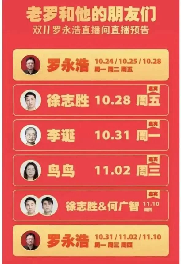 罗永浩加上李佳琦、林依轮、俞敏洪,四人组成双十一“说学逗唱”四大天王主播。