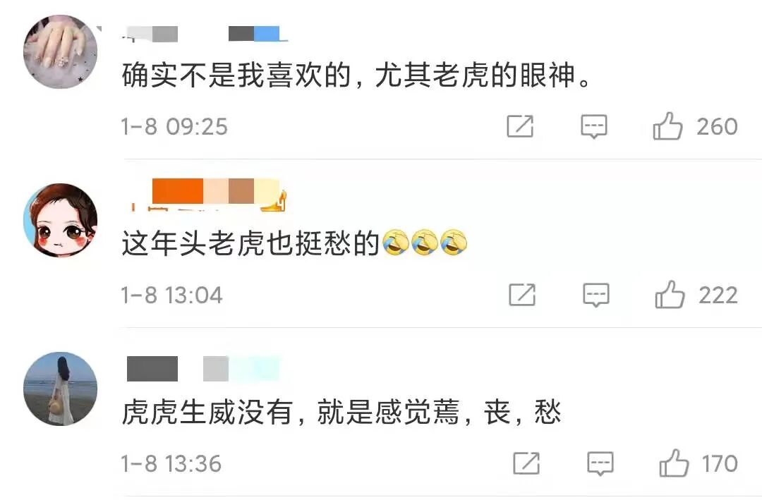 我看了一下评论区,发现很多人也跟我一样的想法:这个虎是emo虎。