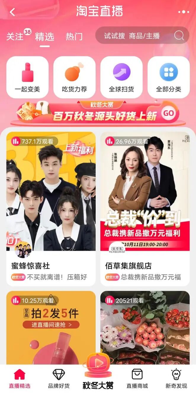 就在此前,淘宝直播新生态事业线负责人还表示:“今年淘宝直播的目标是新增100个粉丝量过百万的账号。”