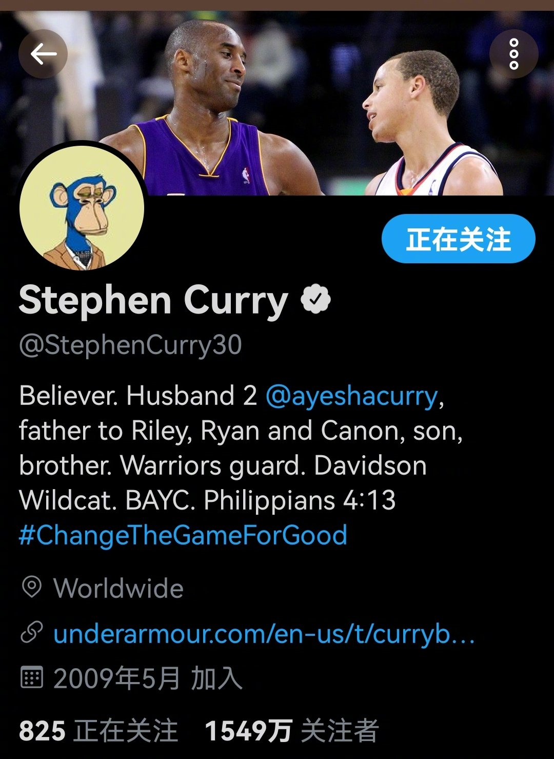 要知道,库里的上一个推特头像,还是科比去世后,他为了纪念科比,换了两个人的合照,那也是库里第一次换头像。如今,库里在背景图保留了和科比的合照,头像则换成了一只蓝色的猴子。