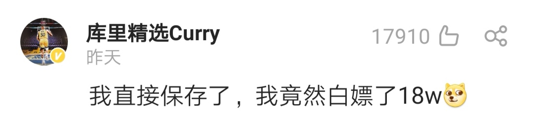 有人表示和库里用同款头像,离百万富翁又更进一步了。