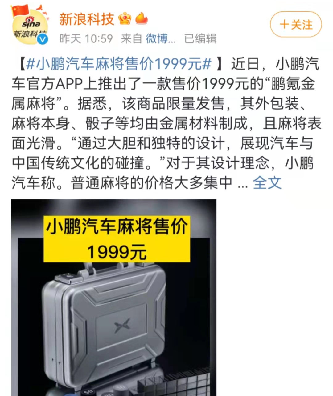 我想,谁也不会因为买了一套“超越期待”的“鹏氪金属麻将”,就去买一辆小鹏汽车吧?