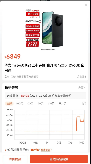 华为去年首发价5499的华为mate60,谁能想到时至今日价格不降反升,来到了6800的价位?