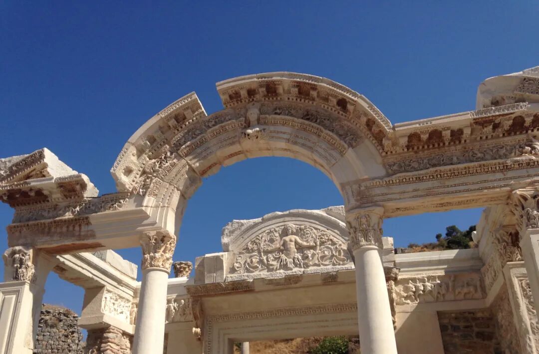 图为土耳其以弗所古城的哈德良神庙,外面是胜利女神尼刻(英文名为Nike,运动品牌“耐克”就来自这个女神),里面是戈耳贡。