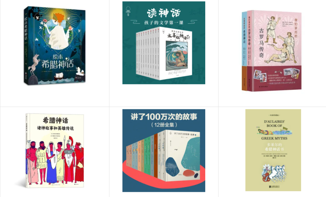 有的是把希腊神话完整讲全,十分厚重,比如《希腊神话全书》(中译出版社);有的会把世界各地的神话汇总出一个套装,比如《太喜欢神话了!》(中信出版社)和《讲了一百万次的故事》(乐府文化);有的则把希腊罗马神话里的神与英雄分来开写,比如《绘本希腊神话》(爱心树);有的会把希腊神话与罗马神话分开来写,比如《我们亲历的古罗马传奇》和《众神讲述的希腊神话》(译林出版社);有的是中英双语,比如刚刚重版的《多莱尔的希腊神话书:双语珍藏版》(联合低音);还有的在书里插入西方建筑和名画的图片辅助理解,比如《希腊神话:诸神故事和英雄传说》(浪花朵朵),等等。