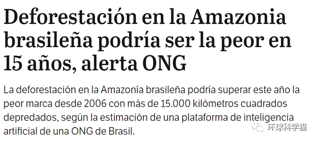 根据巴西一家非政府组织的人工智能平台估计,在2022年,巴西对亚马逊热带雨林的砍伐可能创下新高,成为15年的一个新高,为什么呢?看下数据。