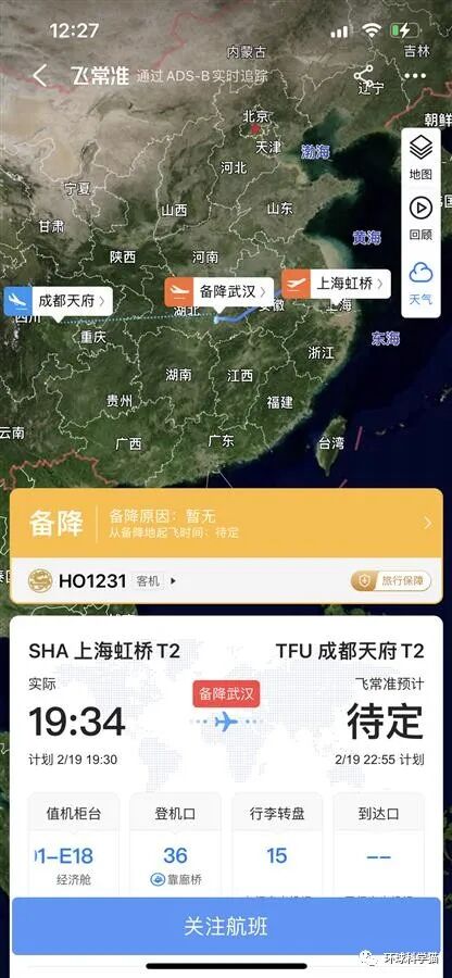 根据民航公开信息显示,在2月19日的时候,国内客机吉祥航空HO1231航班,是该公司编号为B-6572的空中客车A320-200型飞机,机龄12.6年,机身喷涂“浦东号”特别涂装。在当天19点34分从上海虹桥机场起飞,原计划22点55分在成都天府国际机场落地。