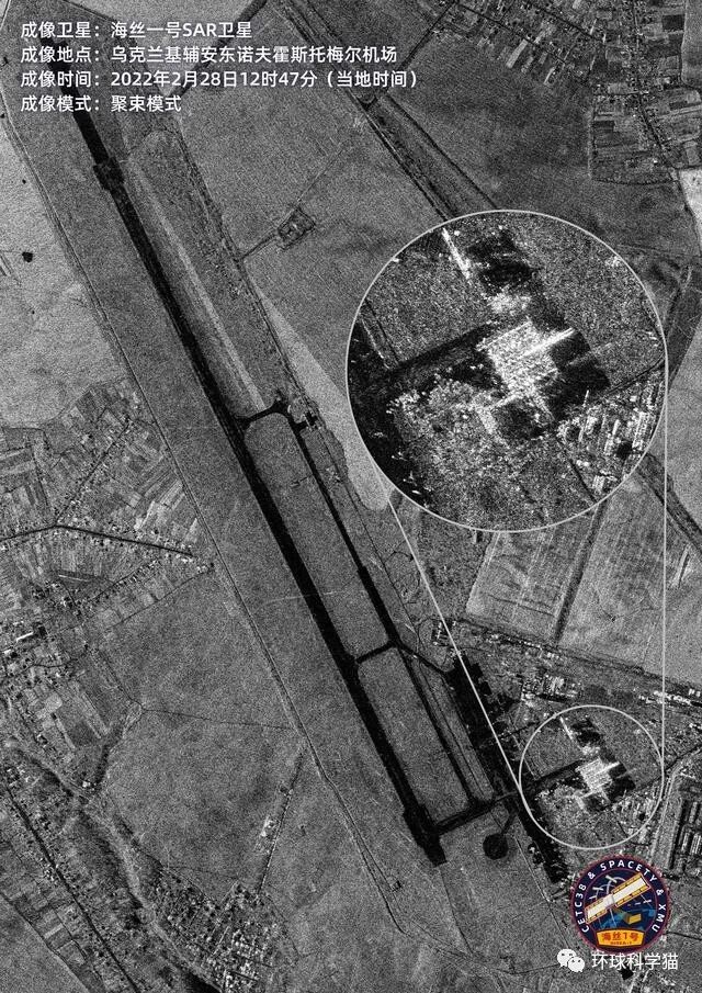 当然,首先我们还是看看,大家“吐槽”自己的卫星照片不清晰,不如国外的清晰,到底是什么原因。我们就用中国的“海丝一号”SAR卫星拍摄的安-225运输机来进行说明。首先看两张图片,这都是中国“海丝一号”SAR卫星拍摄。