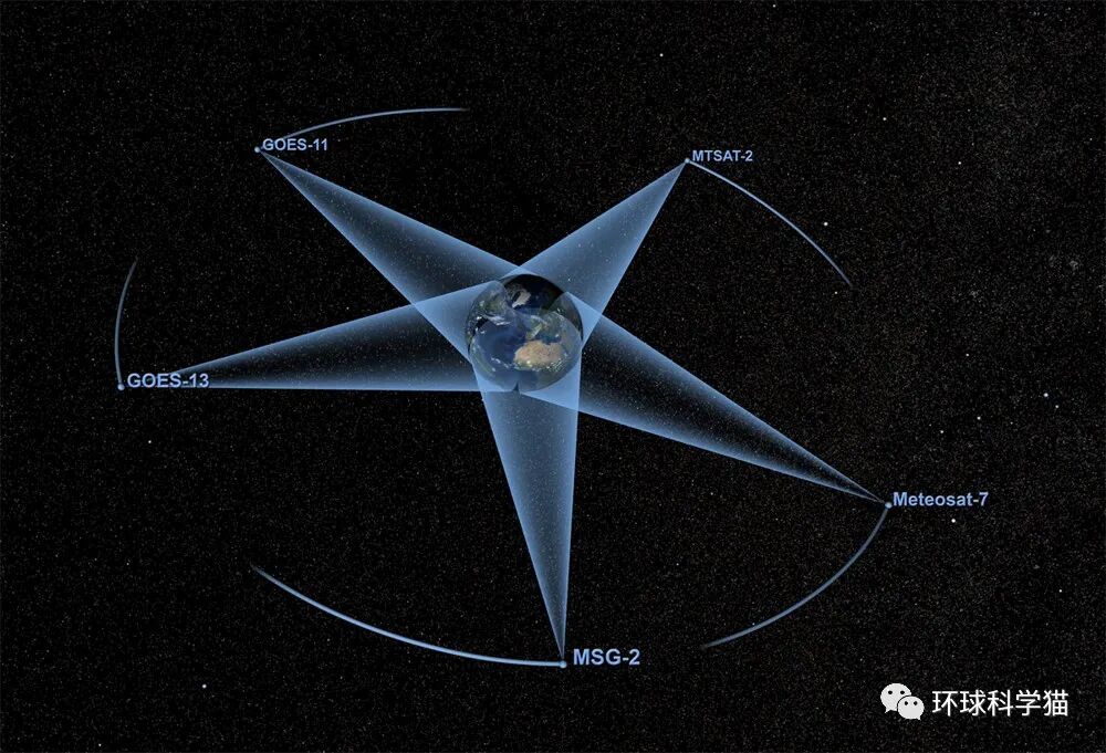 中国风云2F视角、中国风云4B视角、美国GOES-17视角、日本向日葵-8视角的卫星图