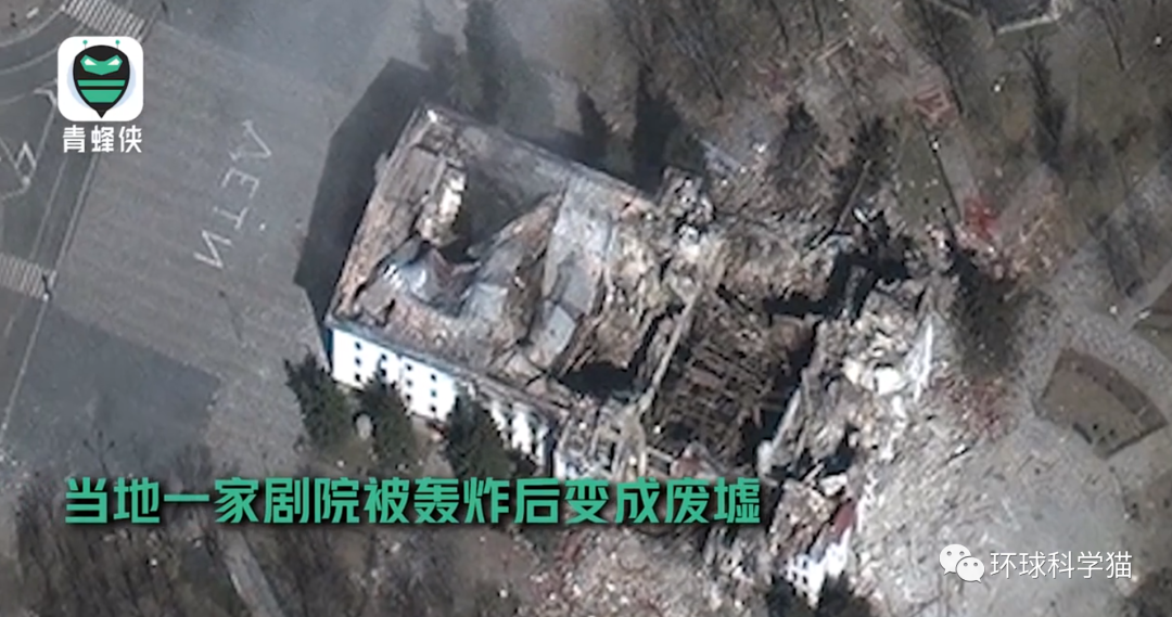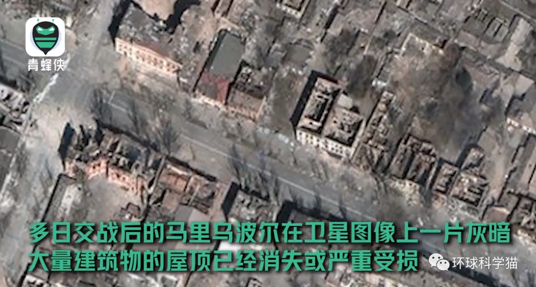卫星图像上大量建筑物的屋顶巴经消失或严重受损