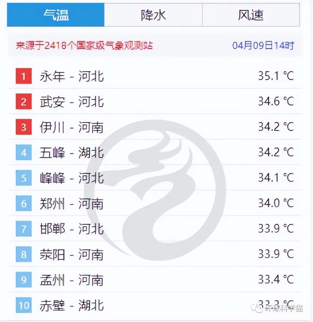 同时,在大暖流的影响之下,河南北部、湖北西部,河北等地局地达35℃,甚至还有超过35度的区域。例如:河北永年就已经出现35.6℃,可以想下,这还是北方!竟然都出现35度以上的高温,真的是太罕见了。