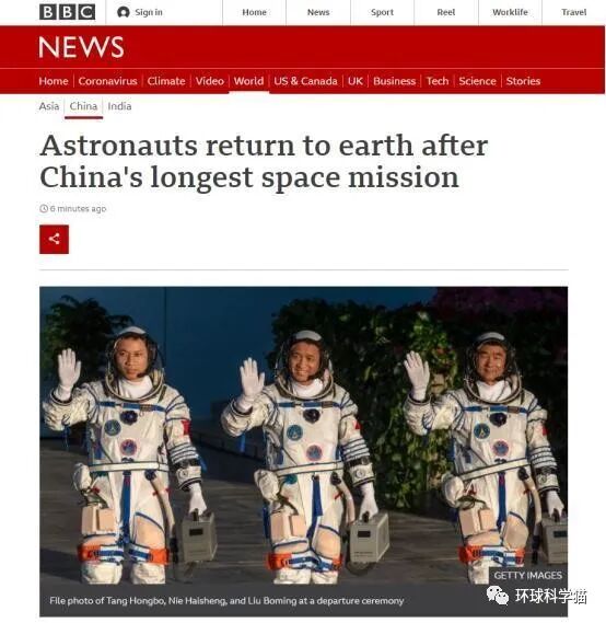 例如:神舟12号返回的时候,有网友转载了一篇关于美国媒体BBC发布的消息,名叫——“Astronauts return to Earth after China's longest space mission”,中文就是说“中国完成最长太空任务后宇航员返回地球”。