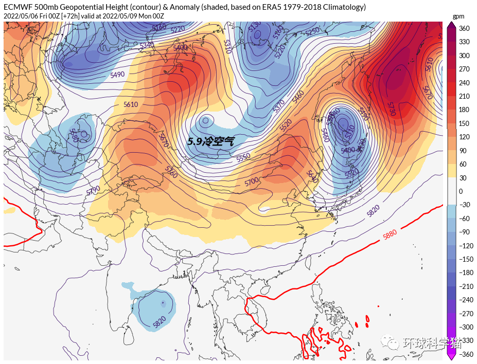 的确,在5月9日的时候,西北上方就有新一轮冷空气进入我国趋势,在5月10日的时候,冷空气东移南下,并且这一波冷空气是“来势汹汹”。