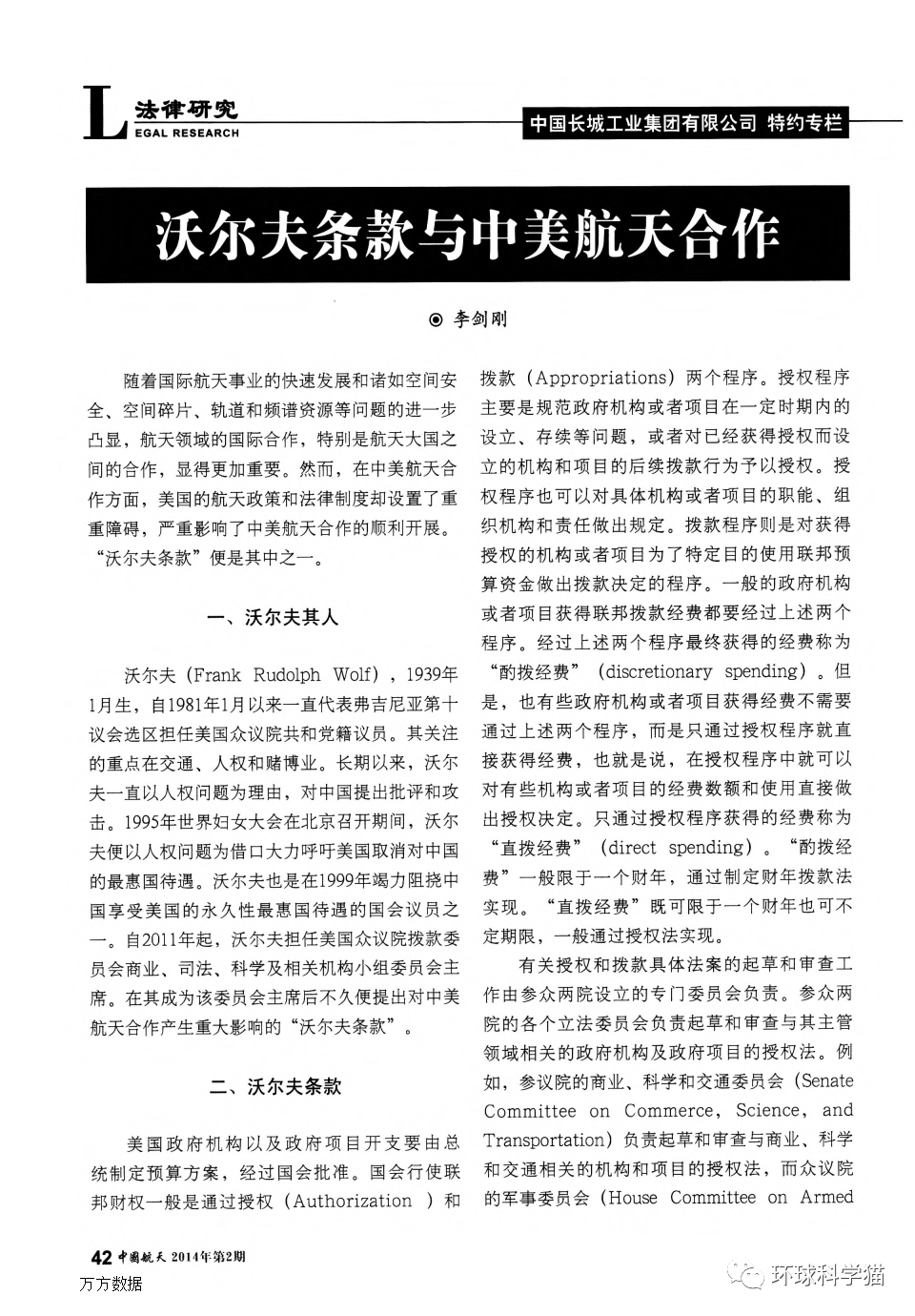 而且,“沃尔夫条款”是美方首次以法律法规的形式对中美航天合作进行限制。这在美国历史上都是“罕见”的。
