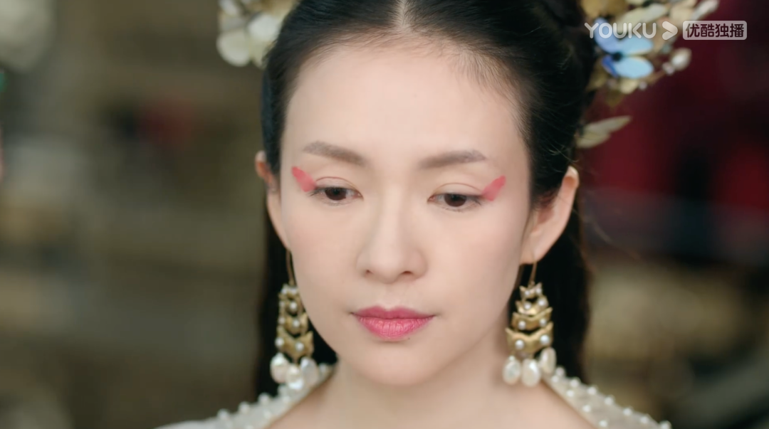 章子怡演古偶,也沦落到和其他小花一样,避不开瞪眼努嘴摇头晃脑装无辜,观感反倒更为别扭。