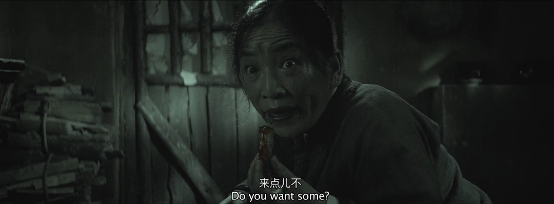 等到半夜,春生被奇怪的声音吵醒,发现老妇竟在啃一手指。