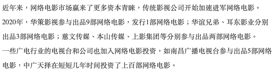 受重锤的各大传统影视公司,包括华谊、华策等行业大佬,其实都开始投拍网大,趋势已然形成。
