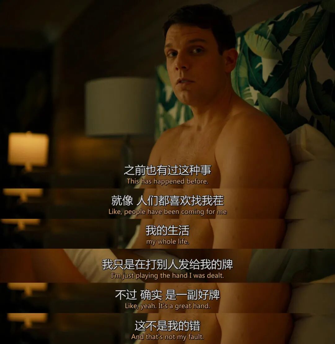 不仅怀疑自己罹患睾丸癌,并在得知父亲因艾滋病而死的真相后,酗酒失态,喋喋不休地向酒店所有人抱怨,他与妻子的X生活不顺。