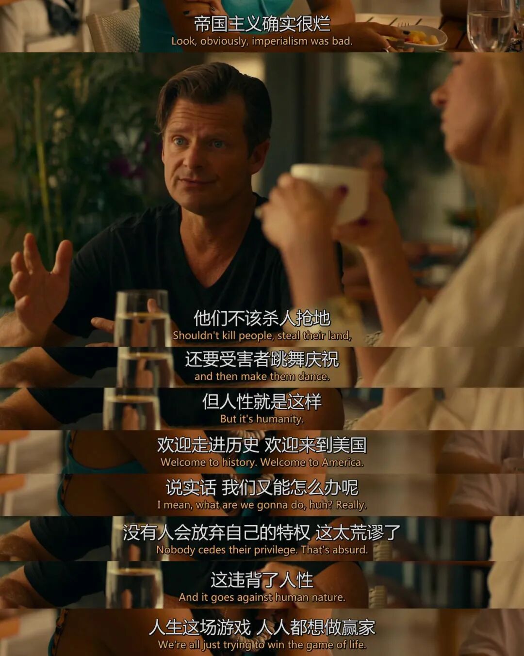 正如朴社长一家表现出的单纯友善,剧中,白人们的言谈举止实际并不会令人产生明显恶感。相反,当地人因贫穷而养成的狡诈圆滑,又与基宇一家一般,更鲜明突出。