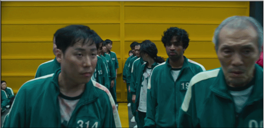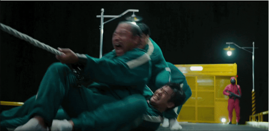 这也是《鱿鱼游戏》和很多大逃杀题材不同的一点,游戏项目都是一些小孩子玩的游戏,包括片名的“鱿鱼游戏”,类似我们的“跳格子”+“抢地盘”。