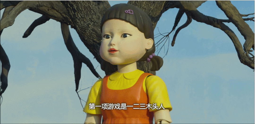 456名参赛者被集中在一起,一个小女孩模样的巨大机器人当“鬼”,当鬼说“一二三木头人”的时间内,参赛者可以向前移动,之后如果被侦察到移动,则为淘汰。