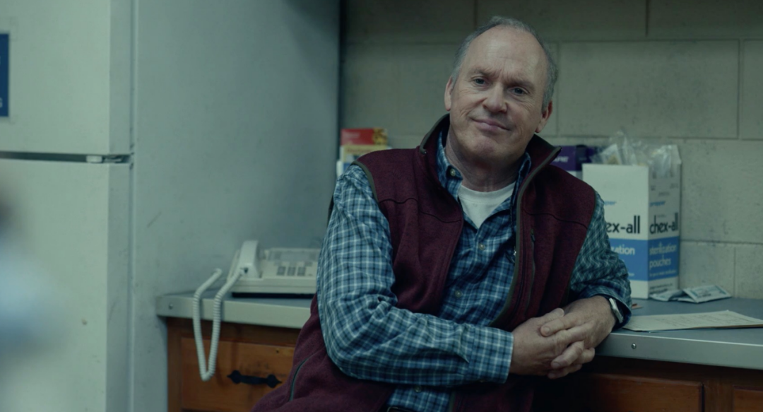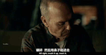 迈克尔·基顿用眼神变化、肢体抖动、以及语速快慢,来呈现出药物上瘾对身体健康的侵蚀。