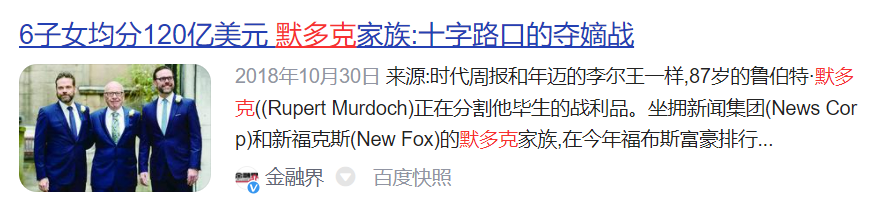 无论是争遗产、性丑闻还是父子开战,都与默多克家族爆出的新闻对得上号。