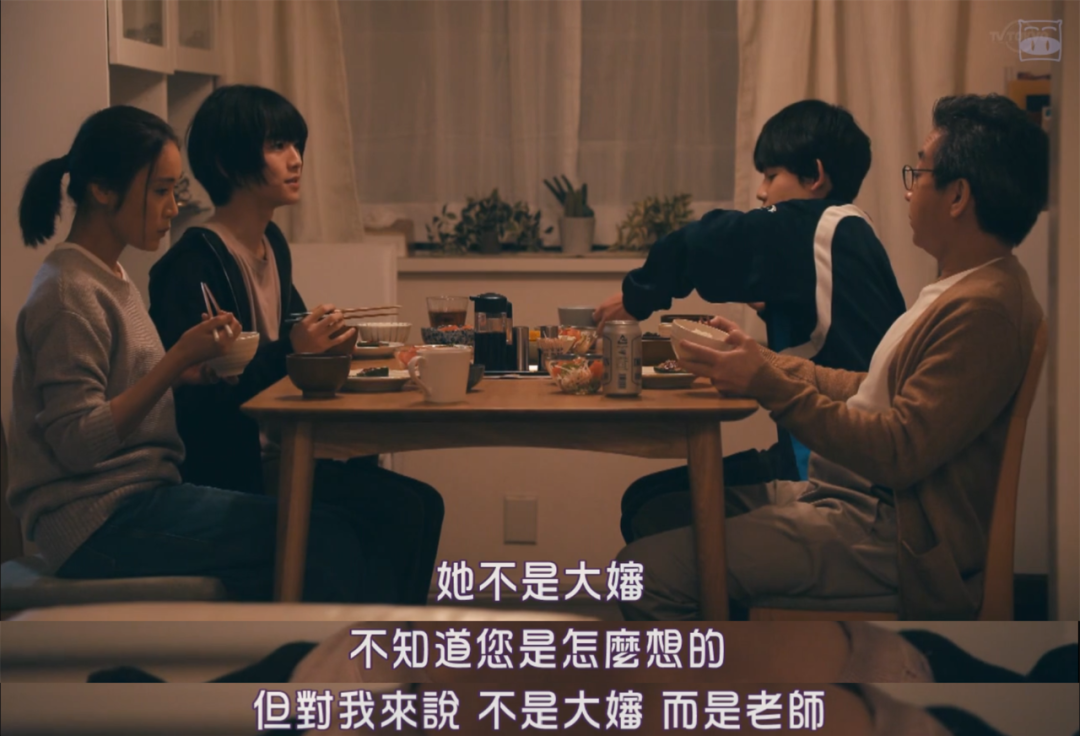 比如刚来的第一天,就像主人一般在忍的家里帮忙做饭,然后和她的家人一起共享晚餐。