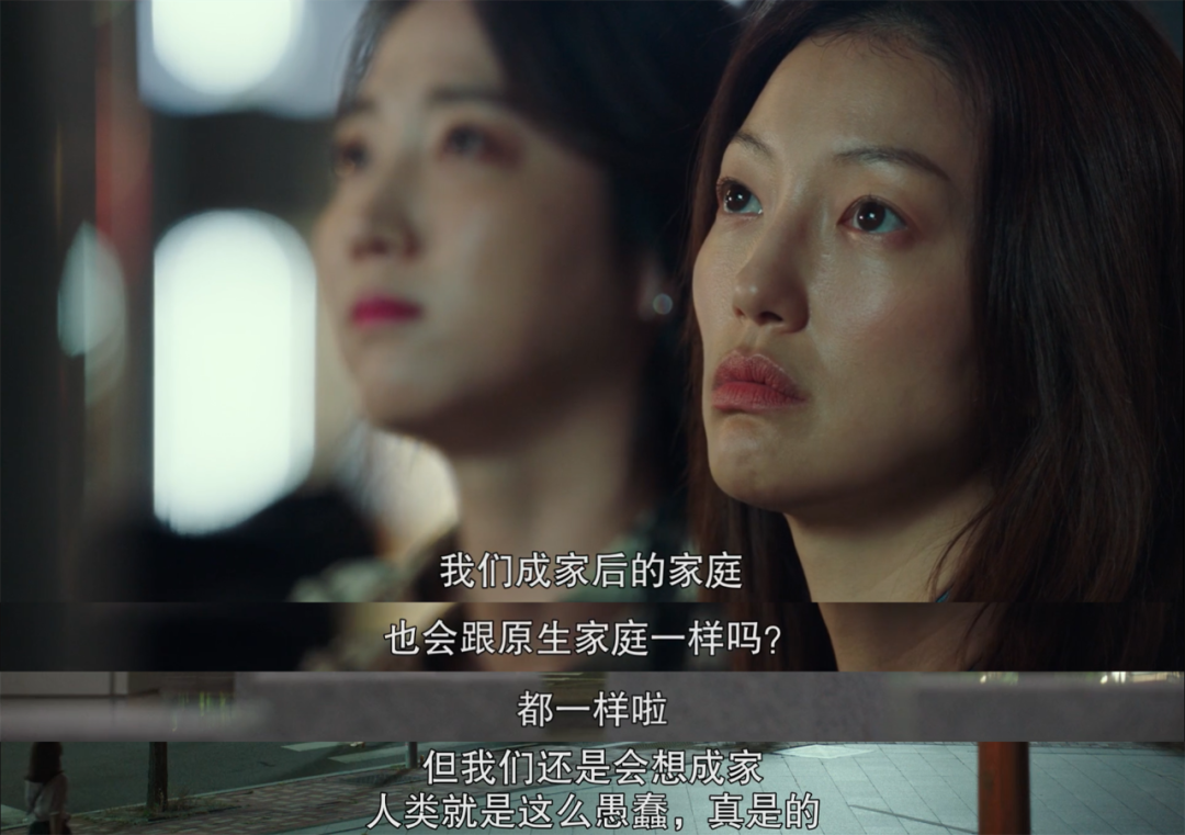 又比如逛街时,闺蜜向琦贞抱怨自己有多厌恶那些拖家带口在商场消费的女人。