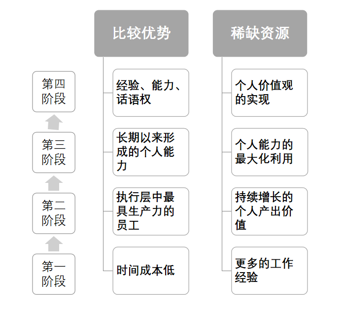对于弱势方也是如此,“比较优势”虽然一开始效果明显,但也很容易发展为被“锁死”,老王的天花板就是小李的天花板。