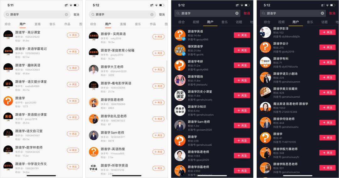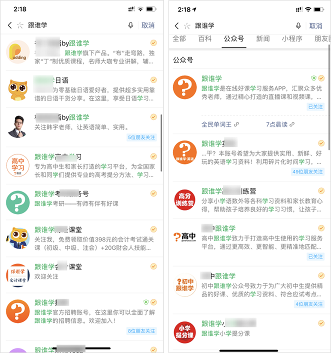 「跟谁学」的第一个特点就是账号贼多,几乎每个平台都布局了几十个上百个账号。在广撒网的同时,灵活应对各平台的规则。