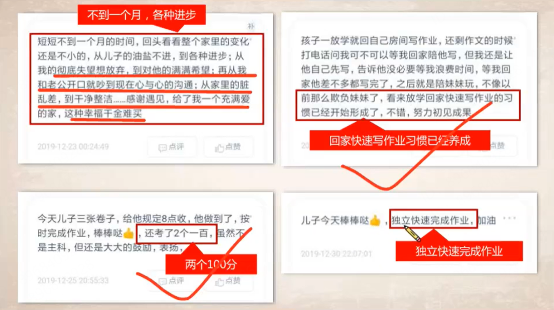最后再和大家分享,孩子学了课程之后的状态,比如不到一个月各种进步,独立快速完成作业等等。