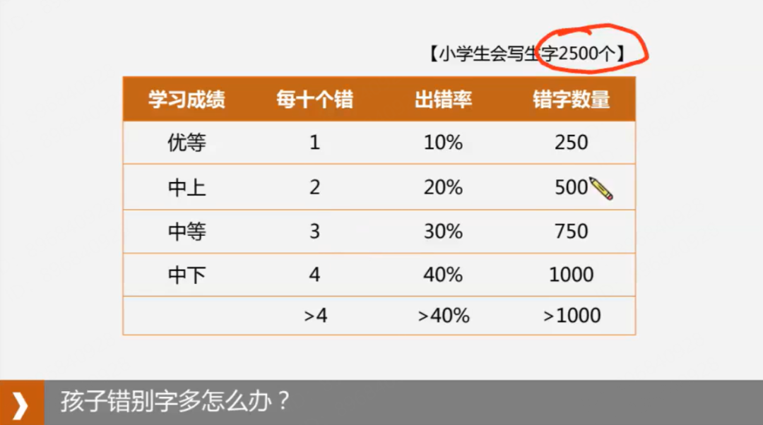 小学生总共掌握的词汇量是 2500 个 ,按照比例算的话,如果 10 字能错 4 个,那么错别字最高都能达到 1000 个以上……