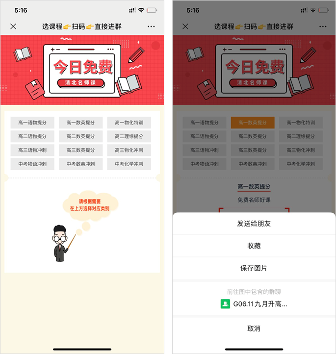 不管是用免费送资料的套路,还是用各种吸睛文案“吸引”用户,「跟谁学」的最终目的都是将用户引导到免费的学习社群中,让用户参与课程的学习。只要用户进了群,就意味着转化的开始。
