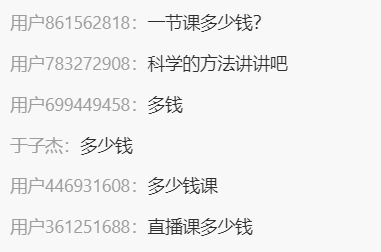 紧接着,讲师会鼓励用户在评论区互动,方便了解用户基本信息更有针对性地讲解课程内容,同时还可以提升直播间氛围。为最终的转化,埋下了种子。