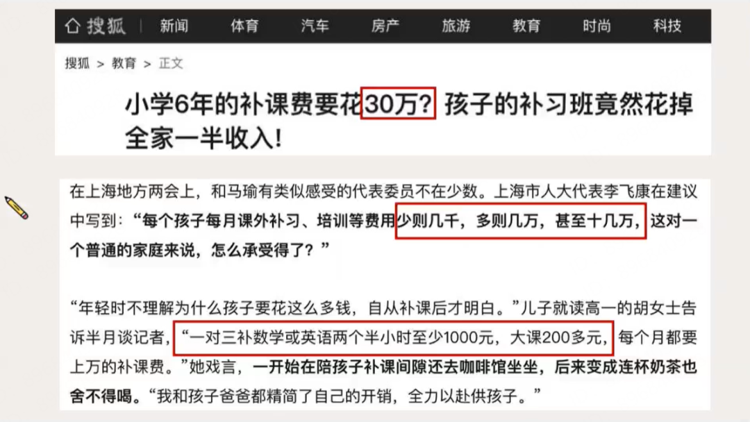 首先,用新闻报道、事实案例告诉用户,现在小学生的补课费用有多高。