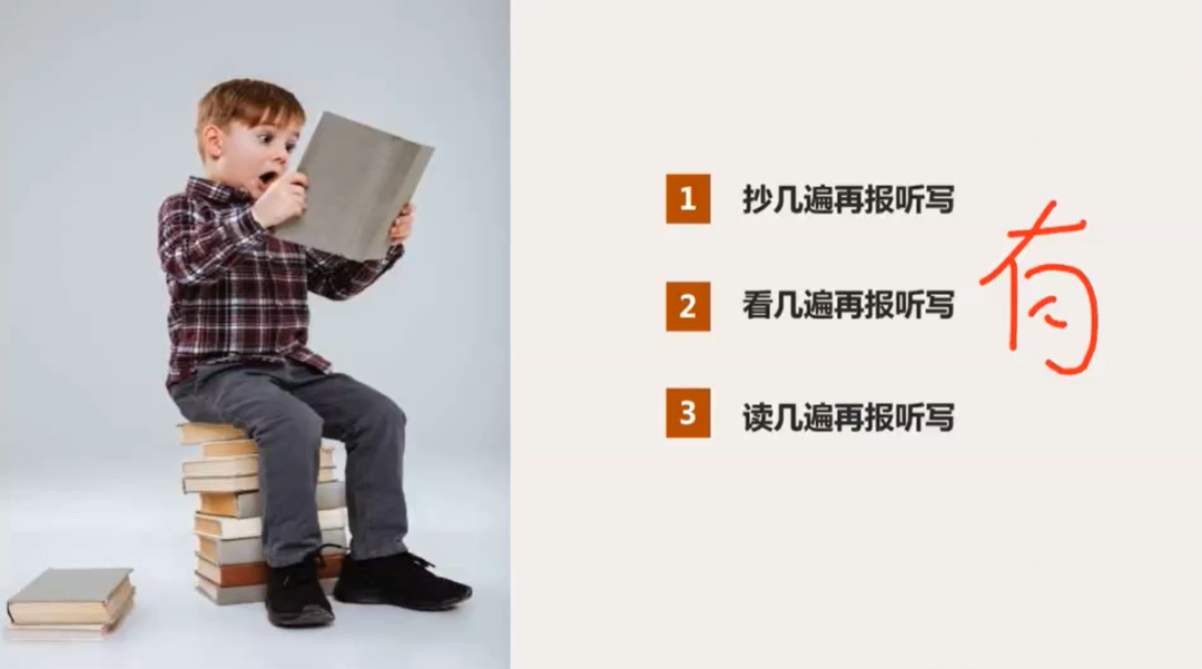 正确的方法应该是:不复习,直接报听写。然后强调,以上的这些方式都是浪费精力,不是高效的方式。